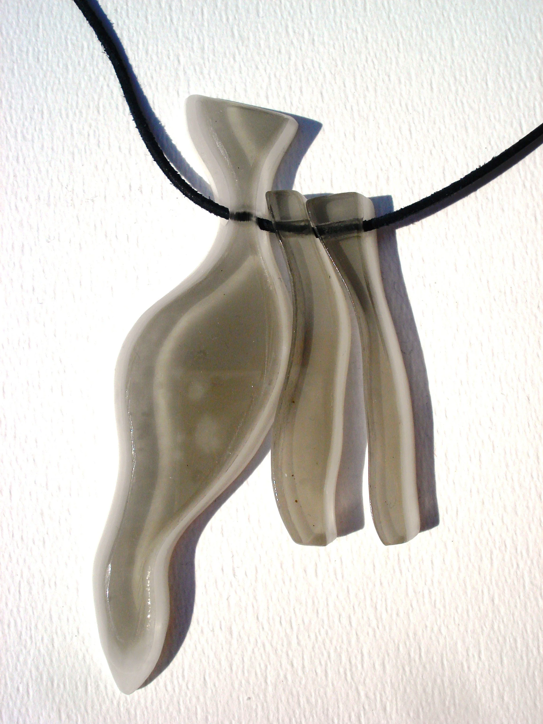 Remembrance jewelry, ‘Three Tails’ three piece pendant for three horses that passed the rainbow bridge, Laminated recycled perspex and horses’ hair.