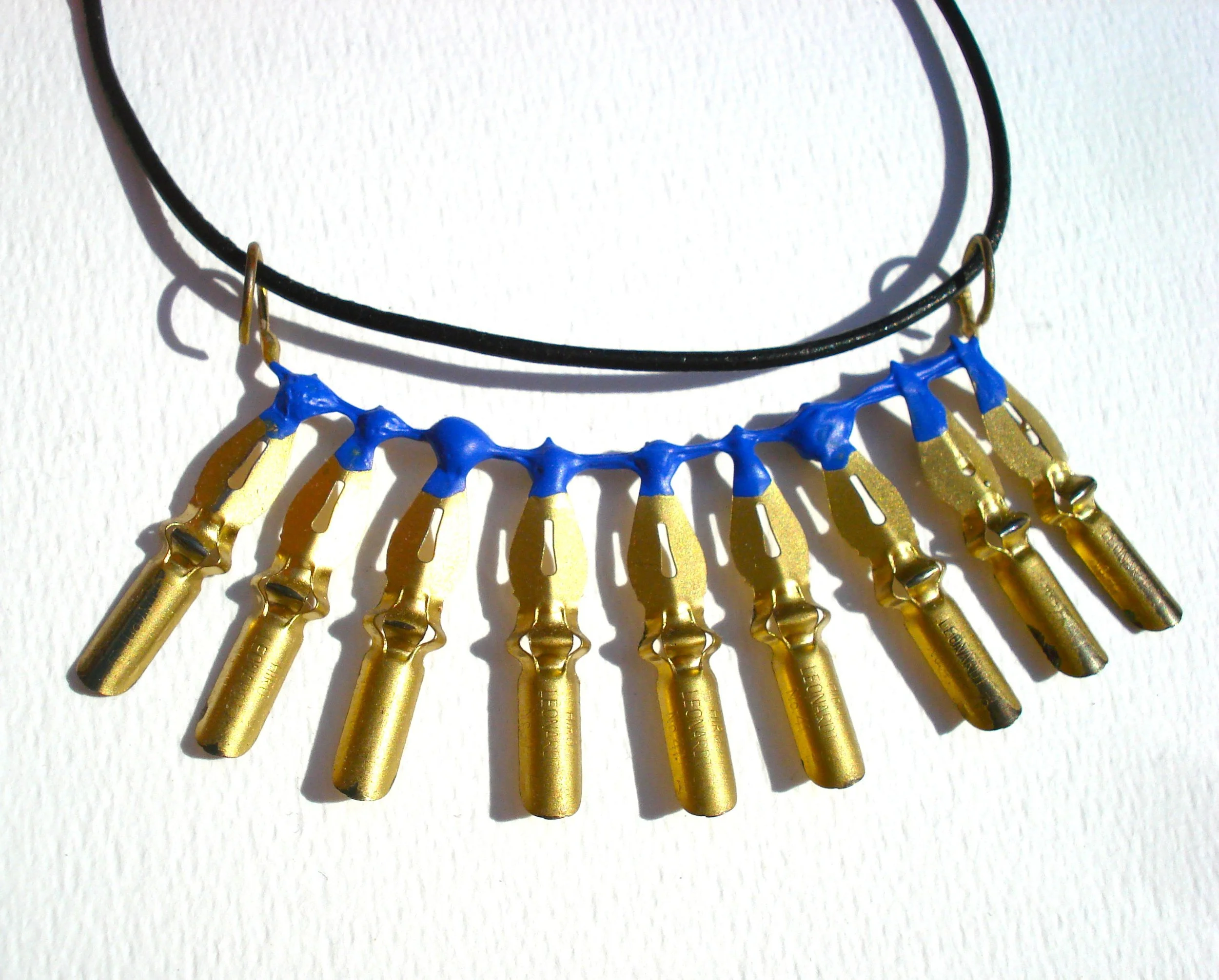 Real ultramarine pigment and Gallium filled pendant’ Gallium is a metal that is solid under 29,8 °C. Hence it melts and starts to move while you wear the jewelry….