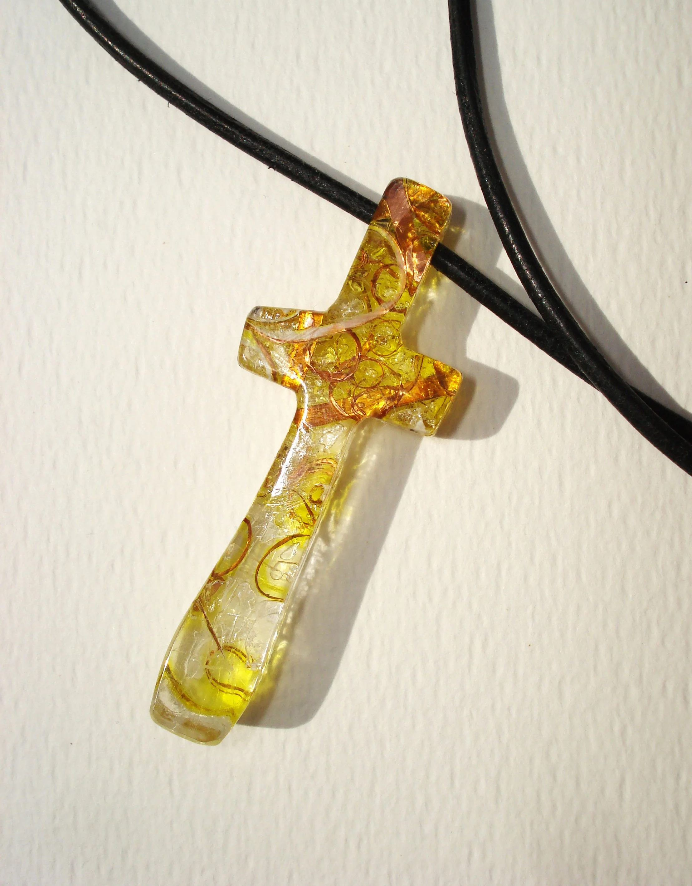 Pendant - Cross, appr. 7cm long, laminated recycled perspex and copper scrapings